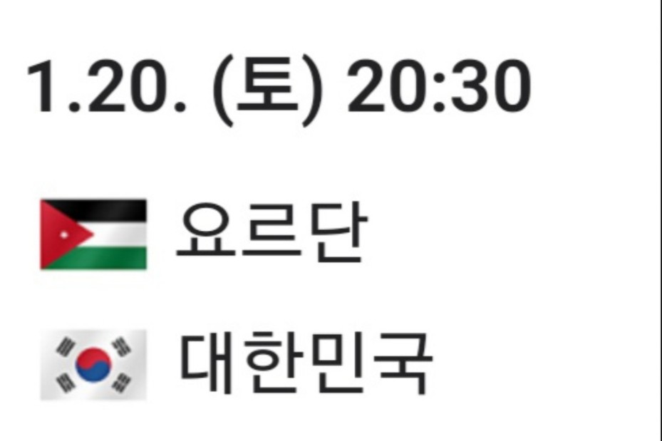 2024.01.20 (토) 오후 8:30 : 대한민국(23위) vs 요르단(87위)